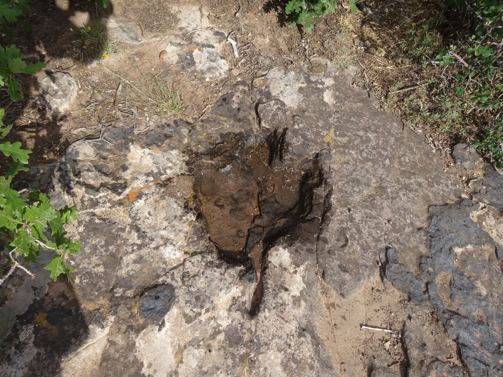 | On the following pictures of the dinosaur footprint, I tried to outline it in red. |